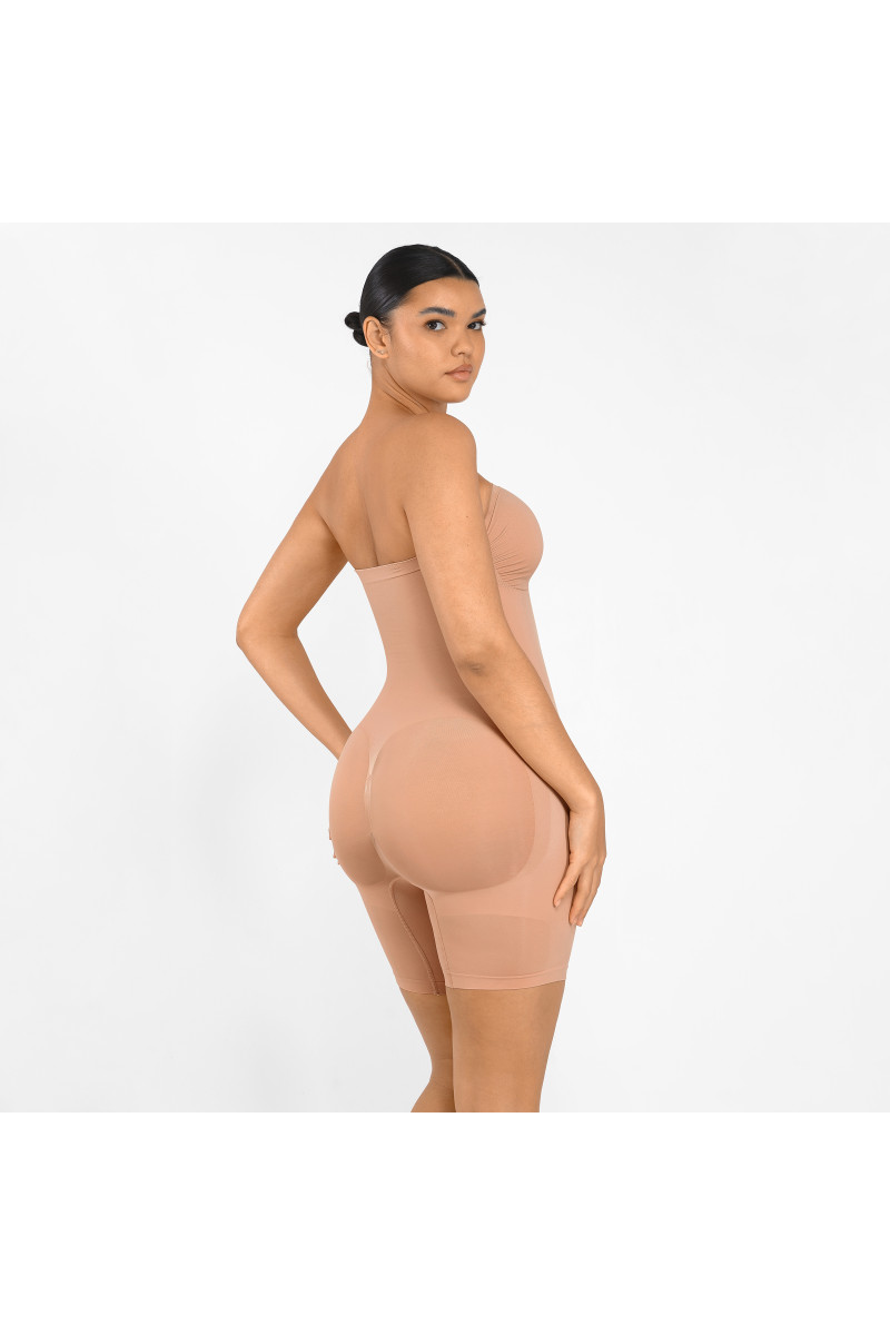 Знімні тонкі бретелі дають можливість адаптувати виріб під різні типи одягу, роблячи його ідеальним вибором для носіння під сукнями з відкритими плечима або вечірнім вбранням. Комбінезон із шортиками, завдяки своїй конструкції, підтримує сідниці, роблячи їх більш округлими та підтягнутими. Легкий, еластичний матеріал забезпечує комфорт протягом дня, не обмежуючи рухів.