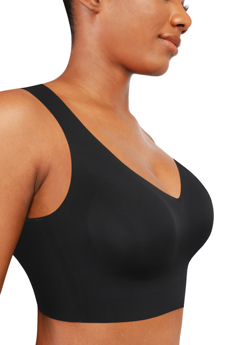 Безшовний формуючий бюстгальтер з вбудованими тонкими чашками — це сучасна майка-топ, що замінює білизну та бюстгальтер. Забезпечує надійну підтримку грудей без кісточок і створює гладкий контур під одягом. М’який еластичний матеріал дихає, не тисне й не залишає ліній під одягом. Застібка ззаду та 4 ряди гачків дозволяють точно відрегулювати посадку.