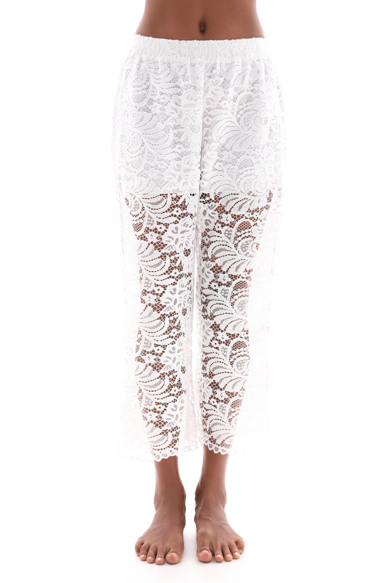 Лёгкая кружевная ткань с выразительным узором красиво драпируется и мягко повторяет движения тела, создавая ощущение лёгкости и свободы. Свободный крой обеспечивает комфортную посадку, а эластичный пояс делает модель удобной для повседневной носки.