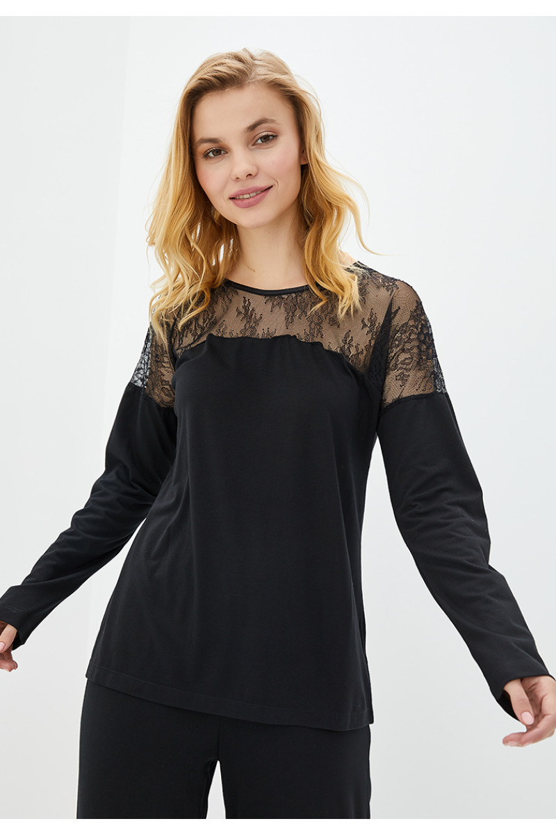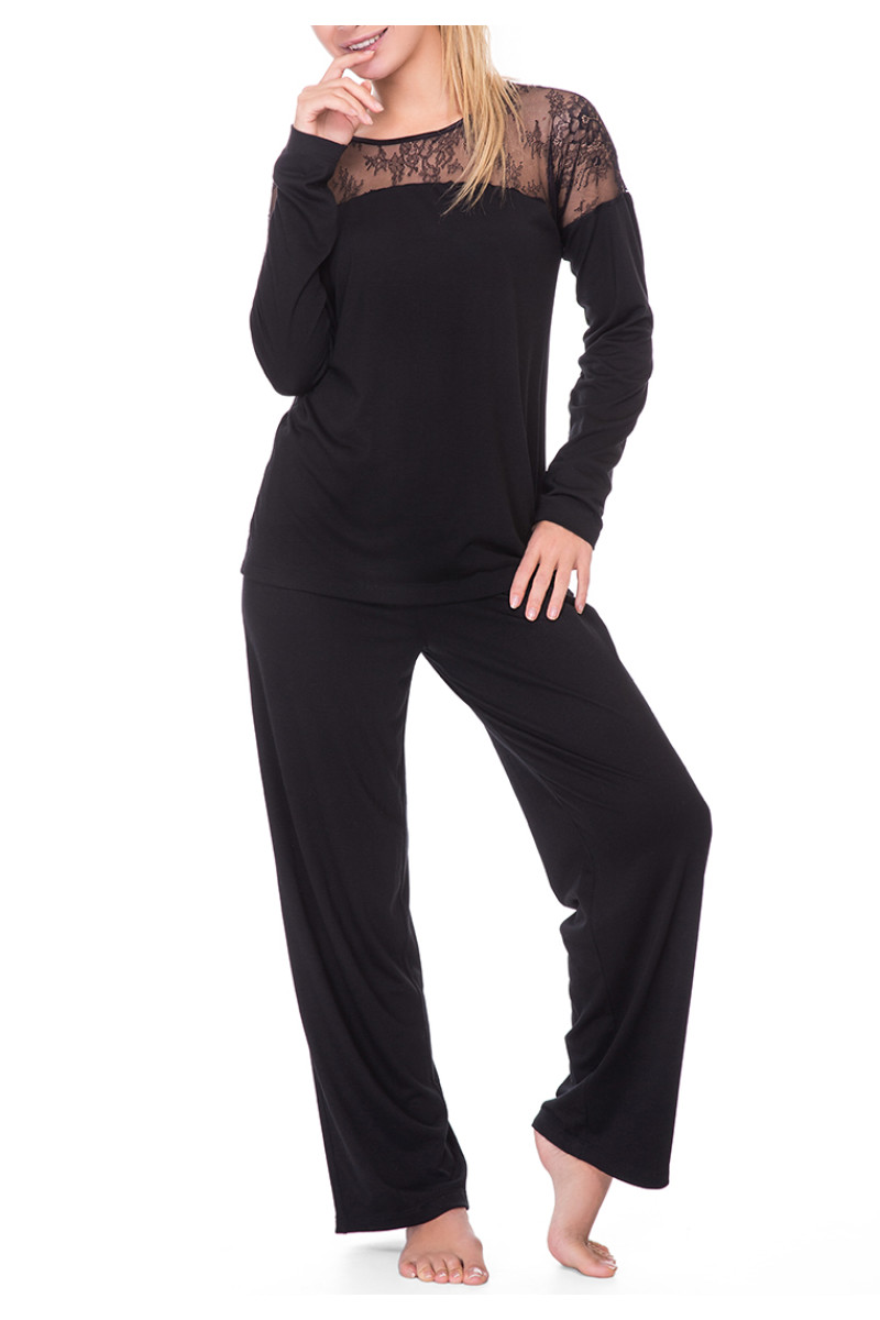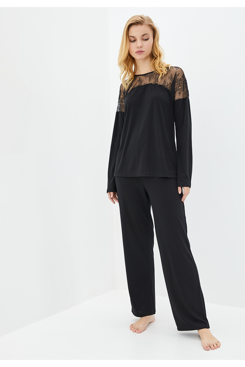 Жіночий комплект «Елегант» German Volf — кофта та штани з мереживом, чорний