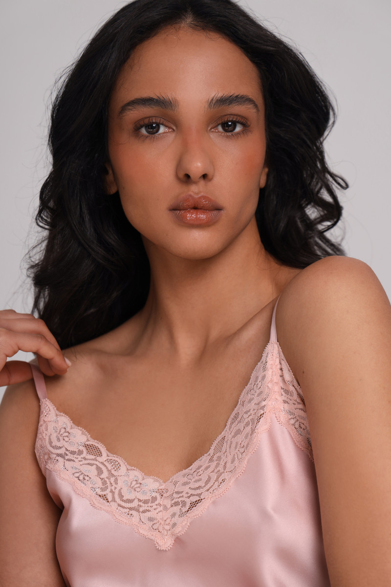 Комплект шовковий жіночий топ та шорти з мереживом, рожевий