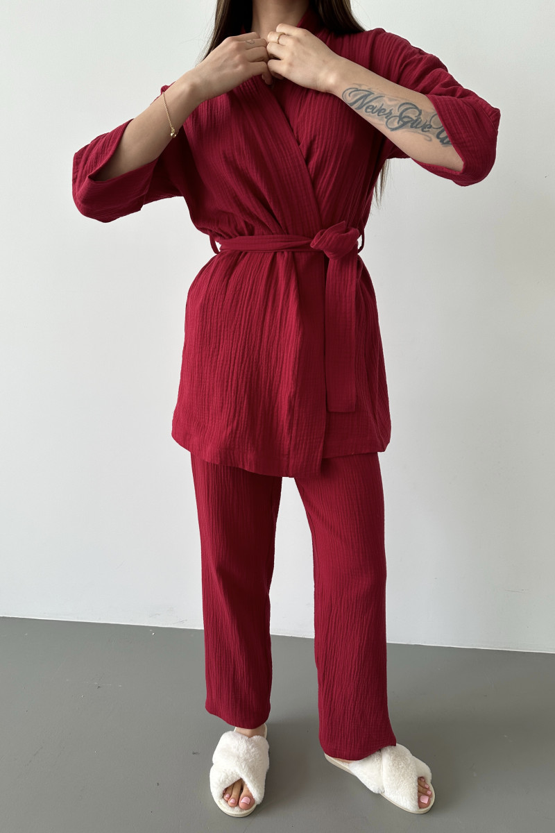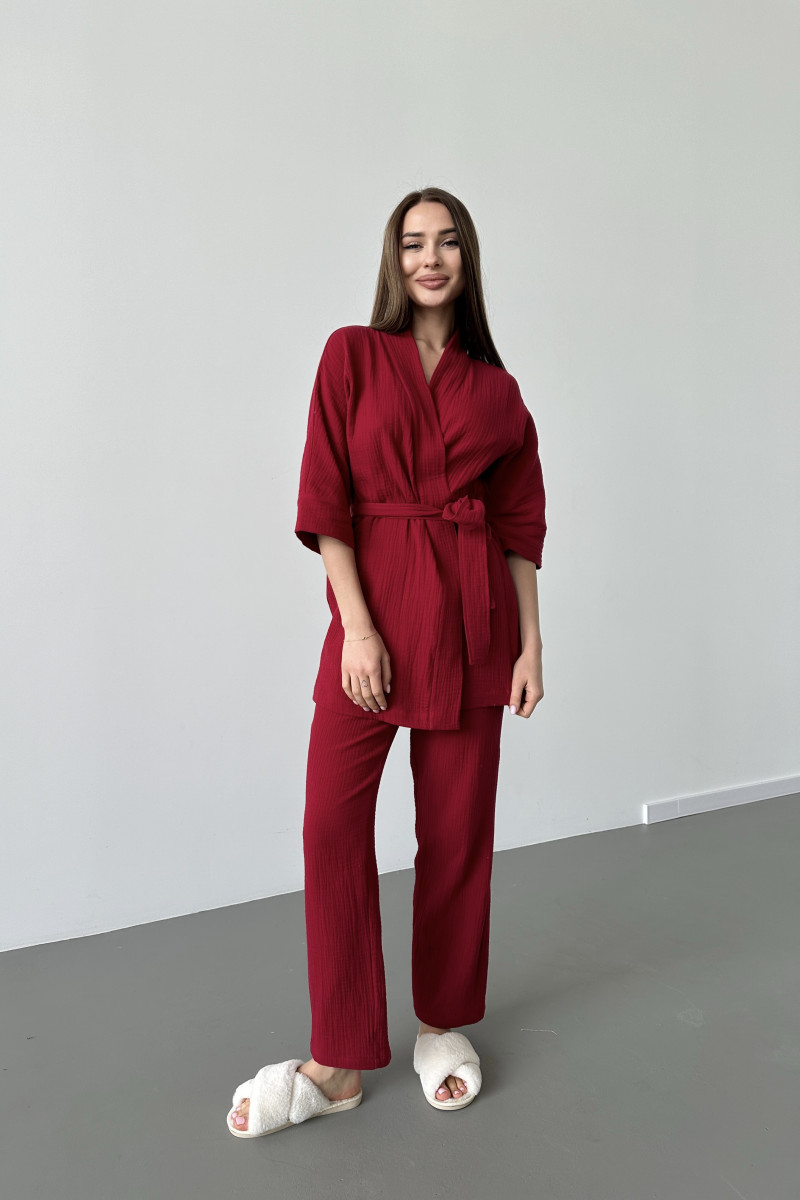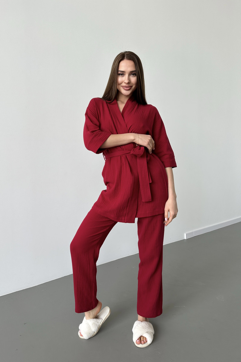 Женский домашний муслиновый костюм German Volf: халат и штаны
