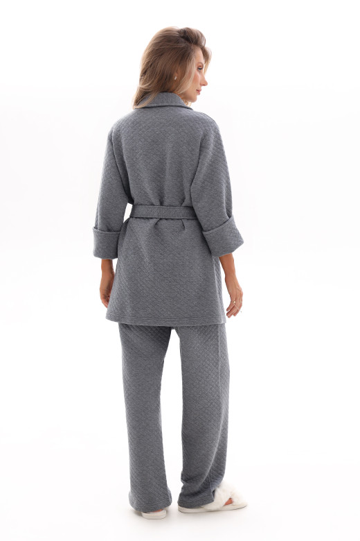 Костюм домашний женский капитоний кардиган на запах и брюки, темно-серый