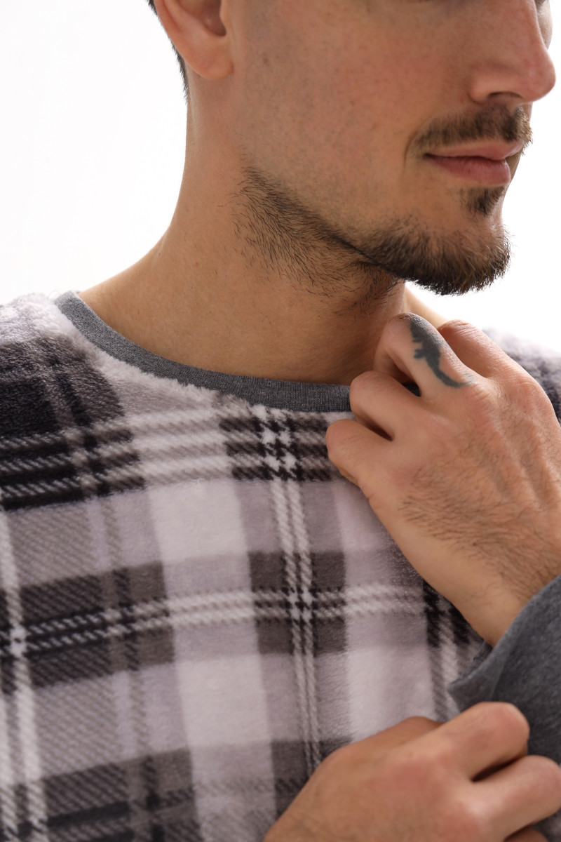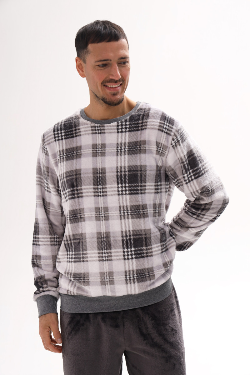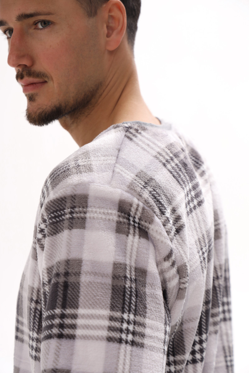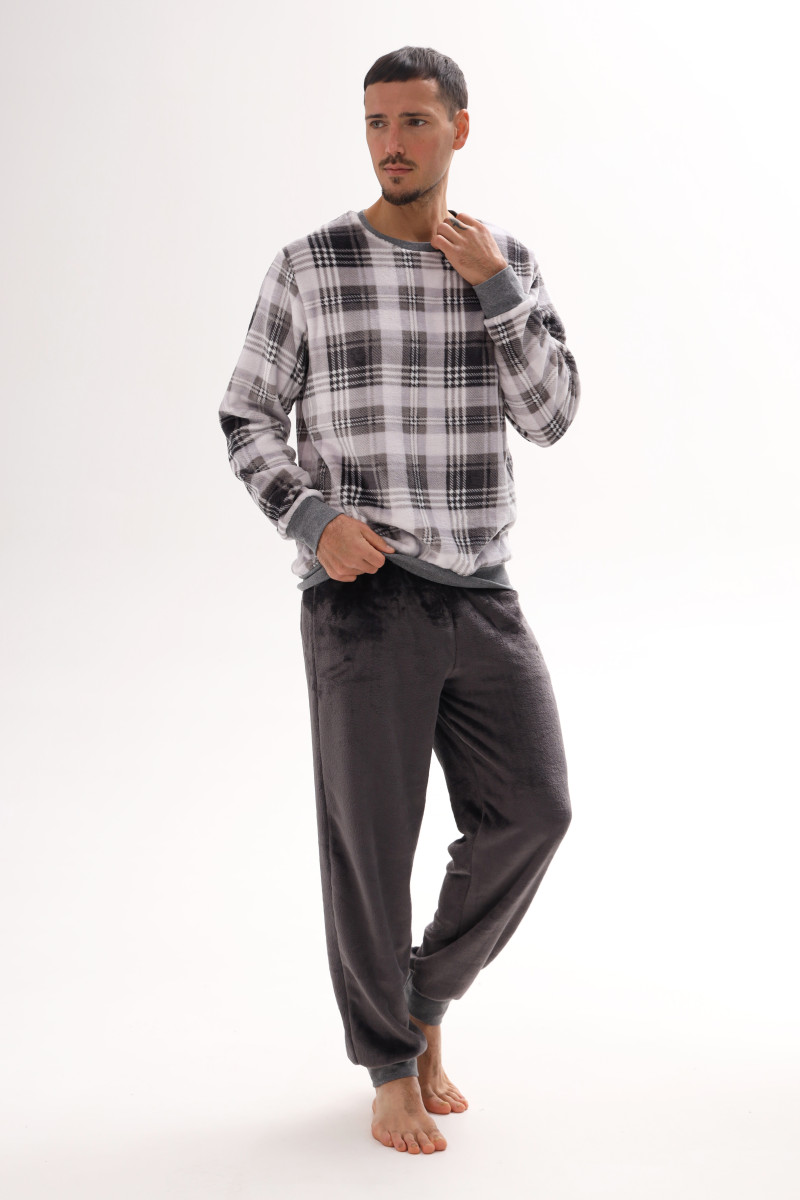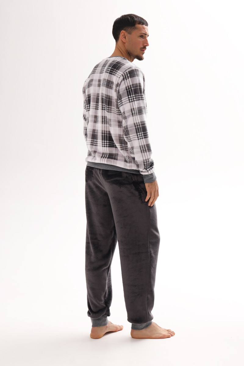 Чоловічий домашній костюм з велсофта в клітинку German Volf