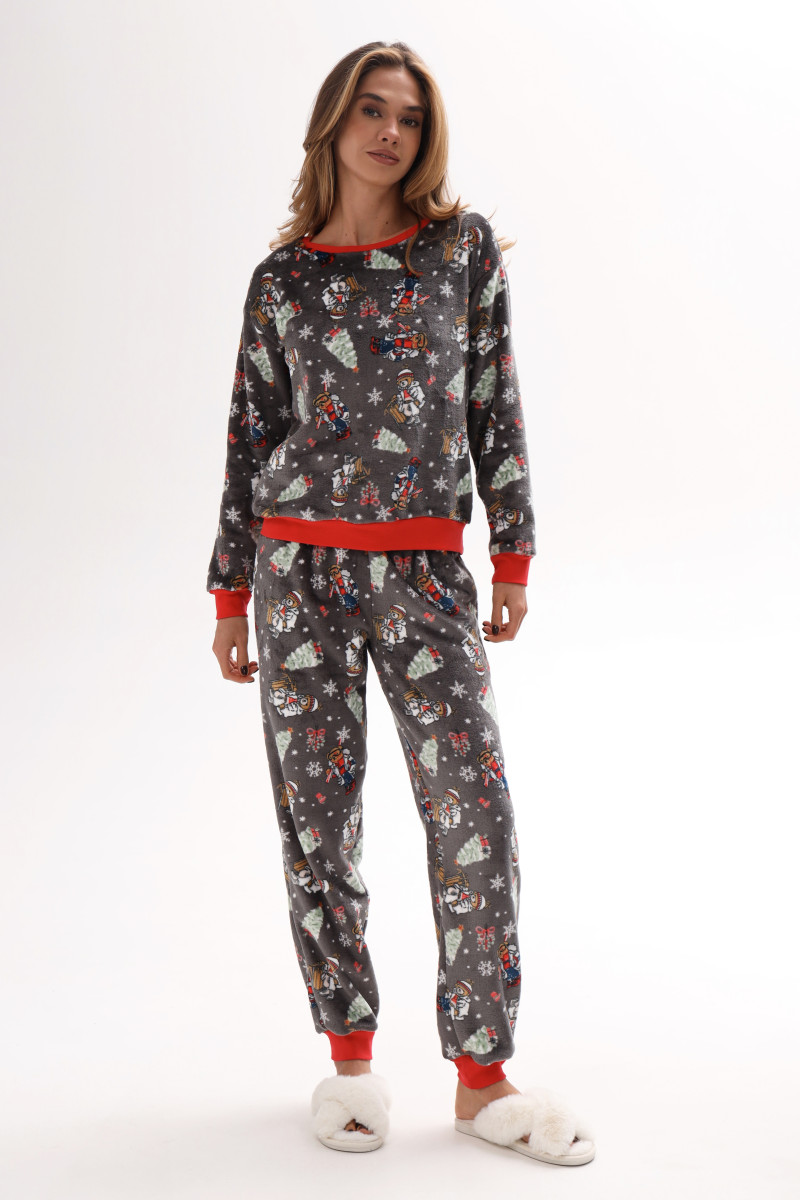 Піжамний костюм жіночий домашній з велсофту, принт ведмедики