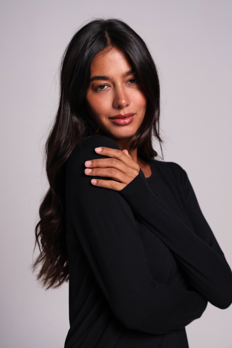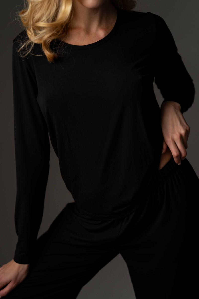 Лонгслів делікатно облягає тіло, не обмежує рухів і залишається непомітним під одягом. Ідеальний для дому, сну, відпочинку та затишних вечорів улюбленої піжами.