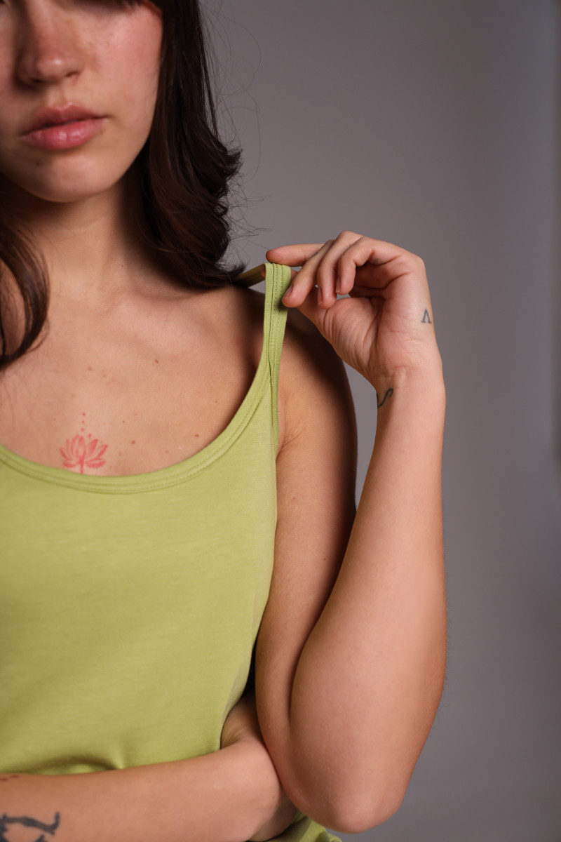 Женская майка из кулира с тонкими бретелями German Volf — зеленый оттенок, свободный крой