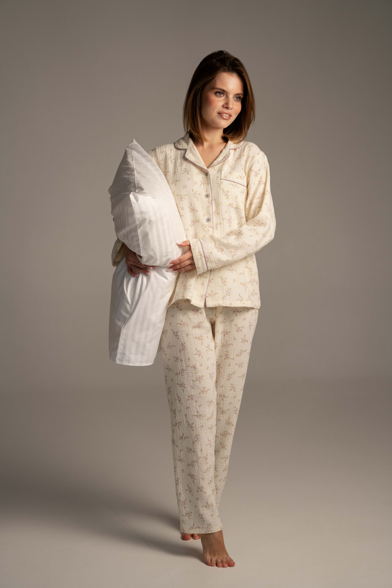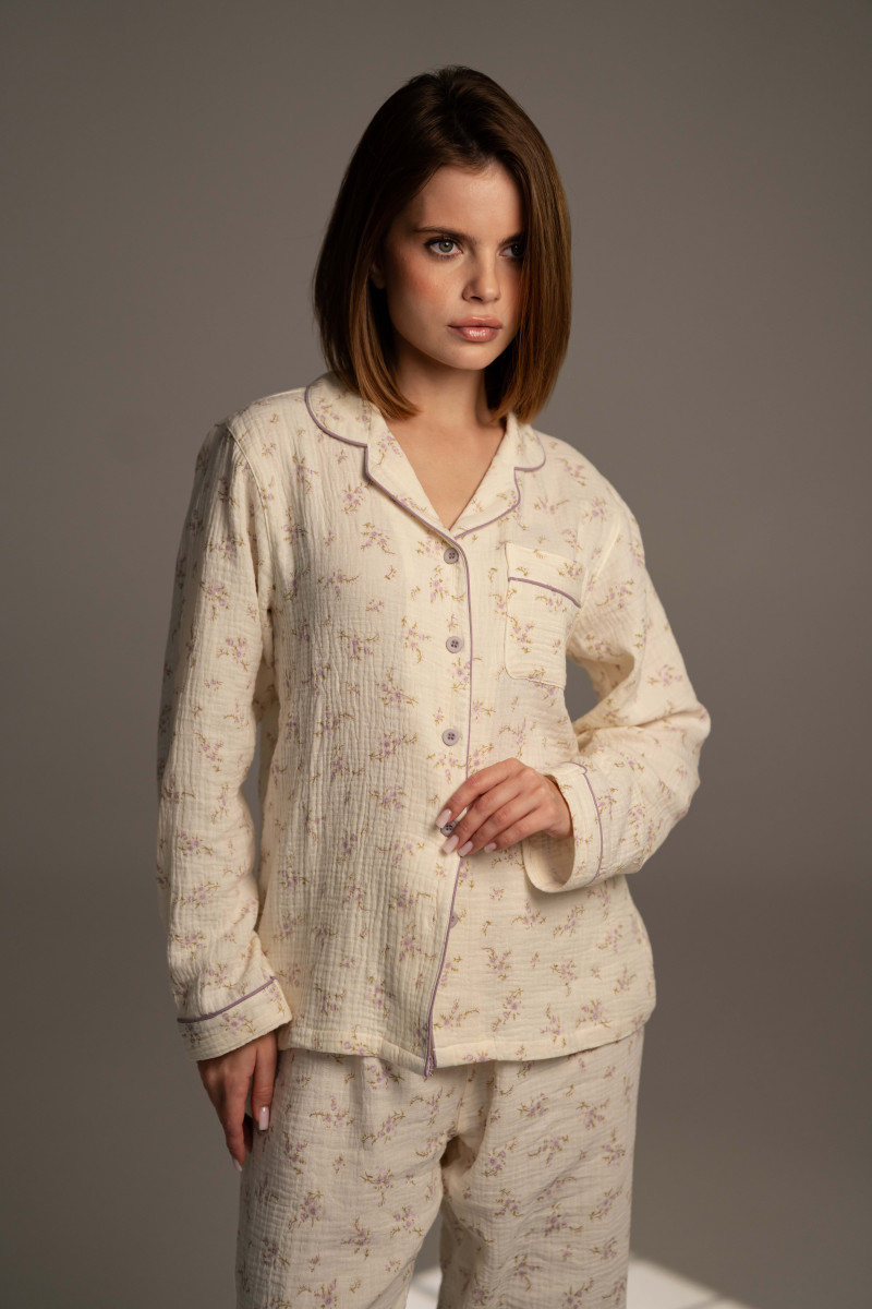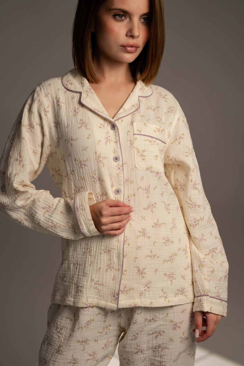 Пижамный комплект сорочка и штаны, цветочный принт