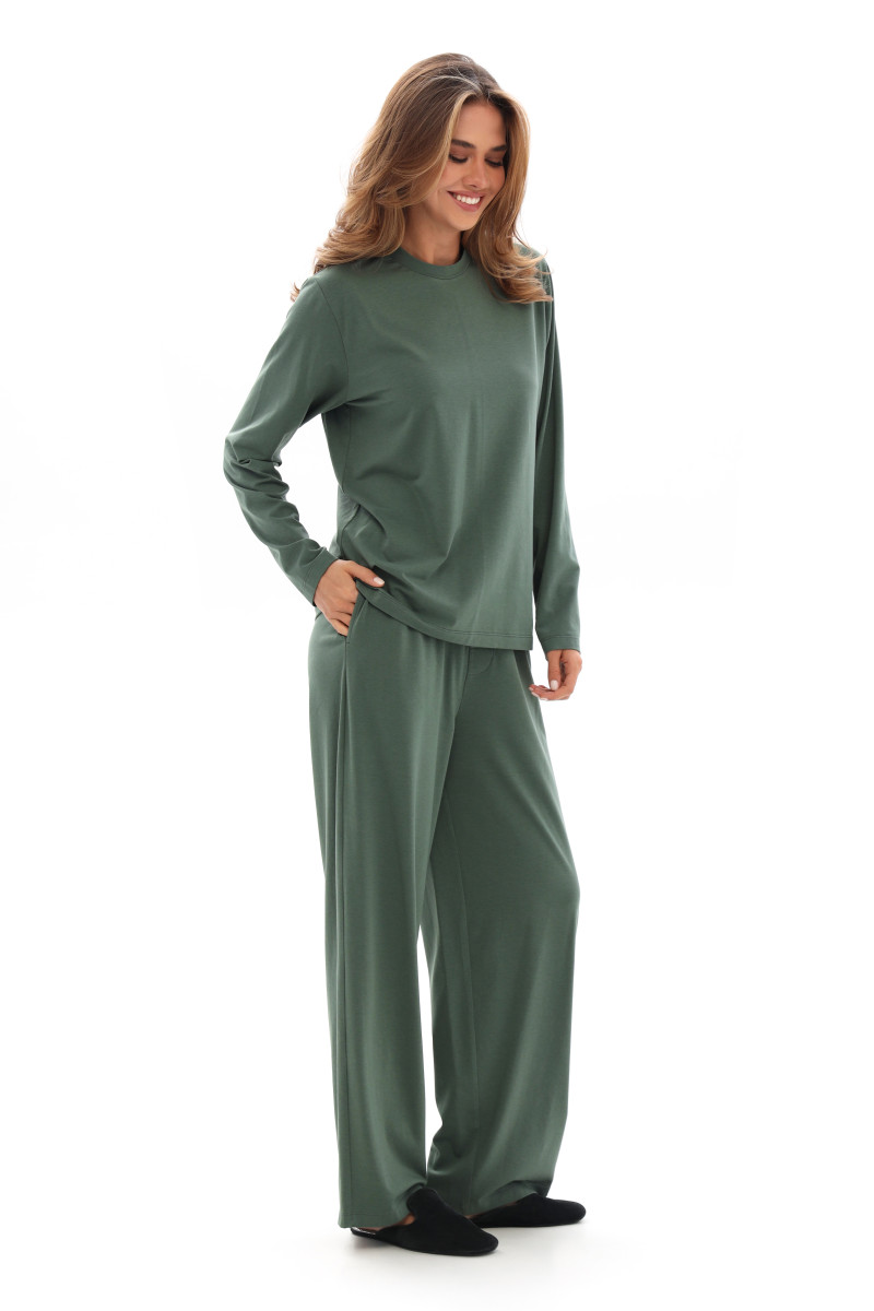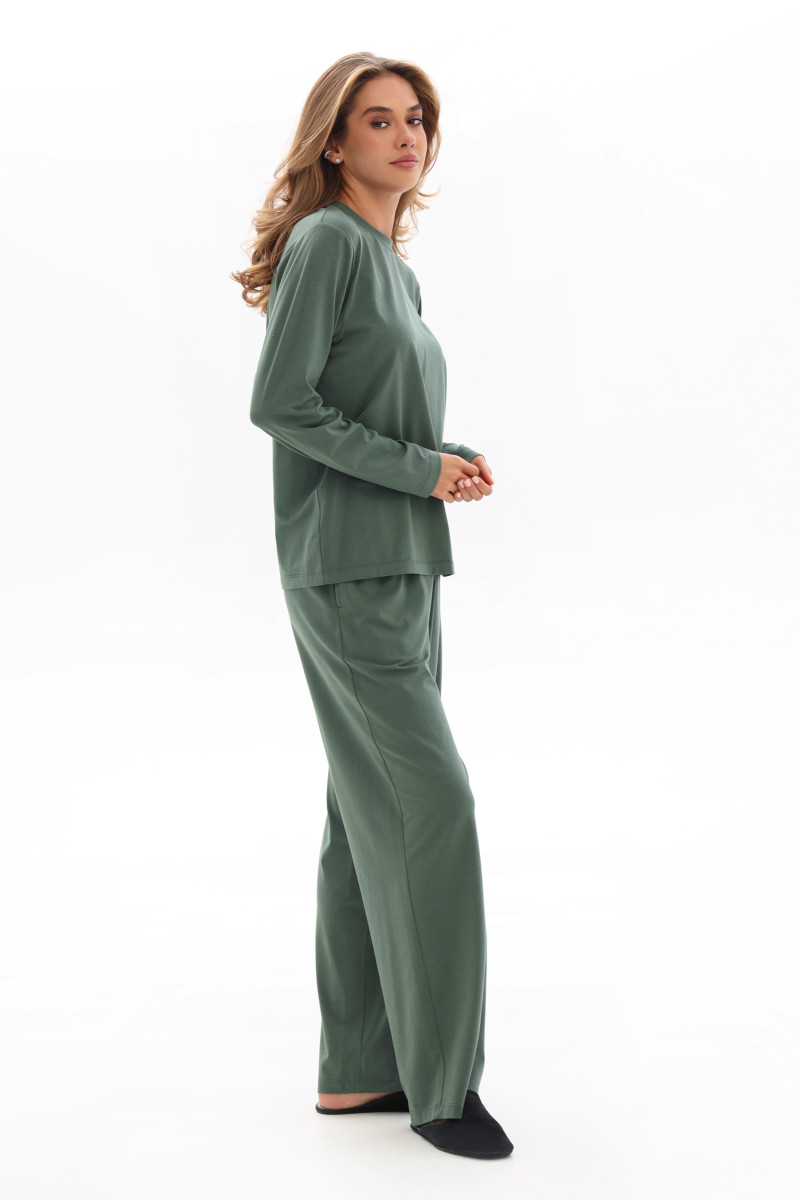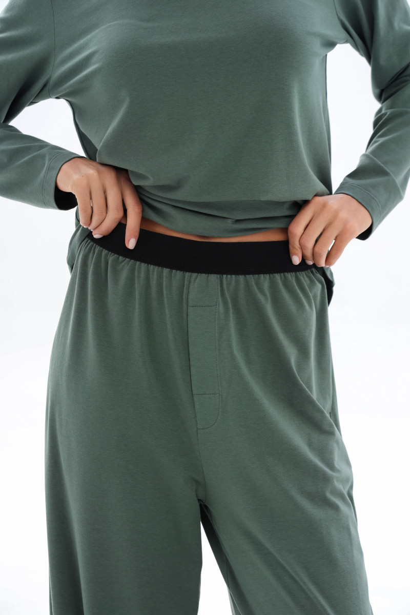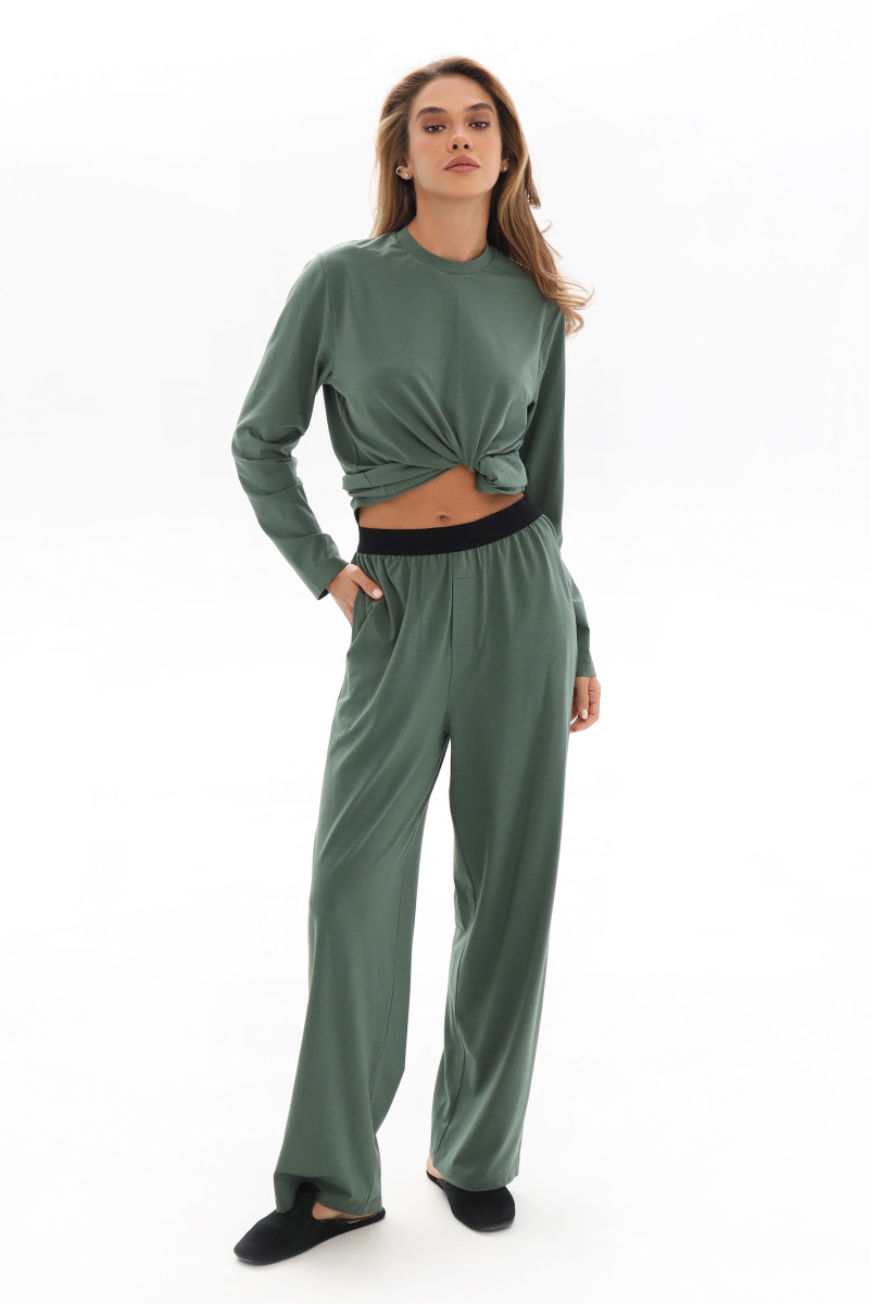 Комплект модаловий оверсайз лонгслів та штани, колір вірідан