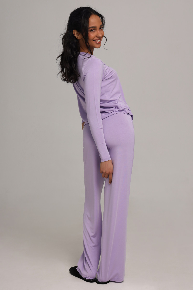 Штани делікатно сидять на талії, м'яко огортають тіло і не сковують рухи. Легкі, пластичні та практично непомітні на тілі. Ідеальні для дому, сну, відпочинку та затишних вечорів у поєднанні з улюбленим лонгслівом або піжамою.