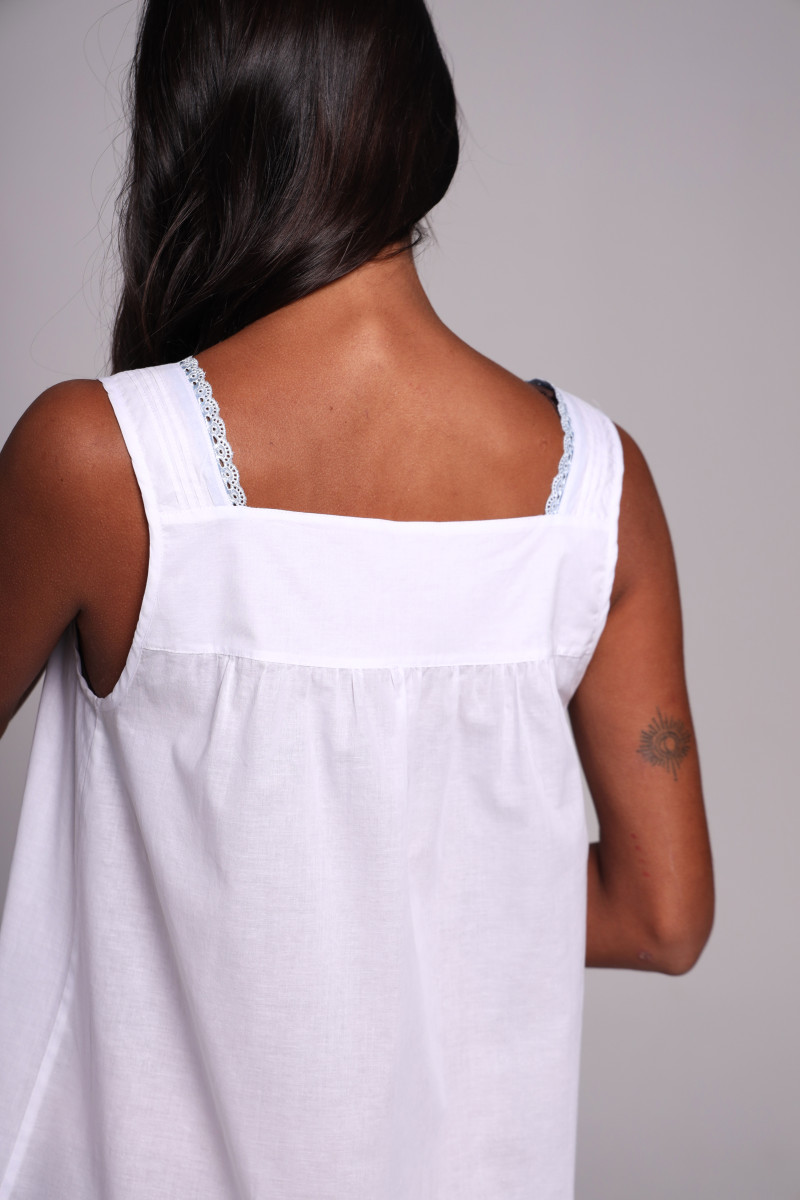 Сорочка ночная батистовая женская, цвет белый с голубым кружевом