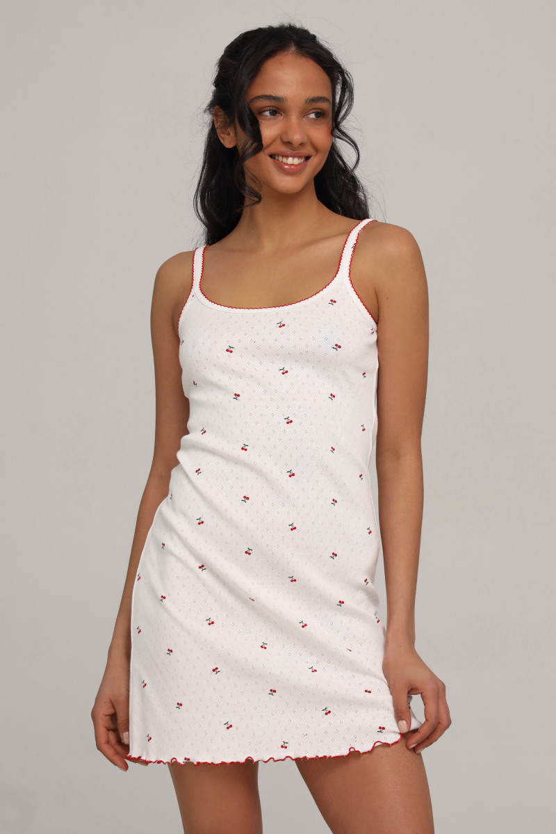 Женская сорочка на тонких бретелях с принтом вишен из коллекции "My Cherry" — German Volf