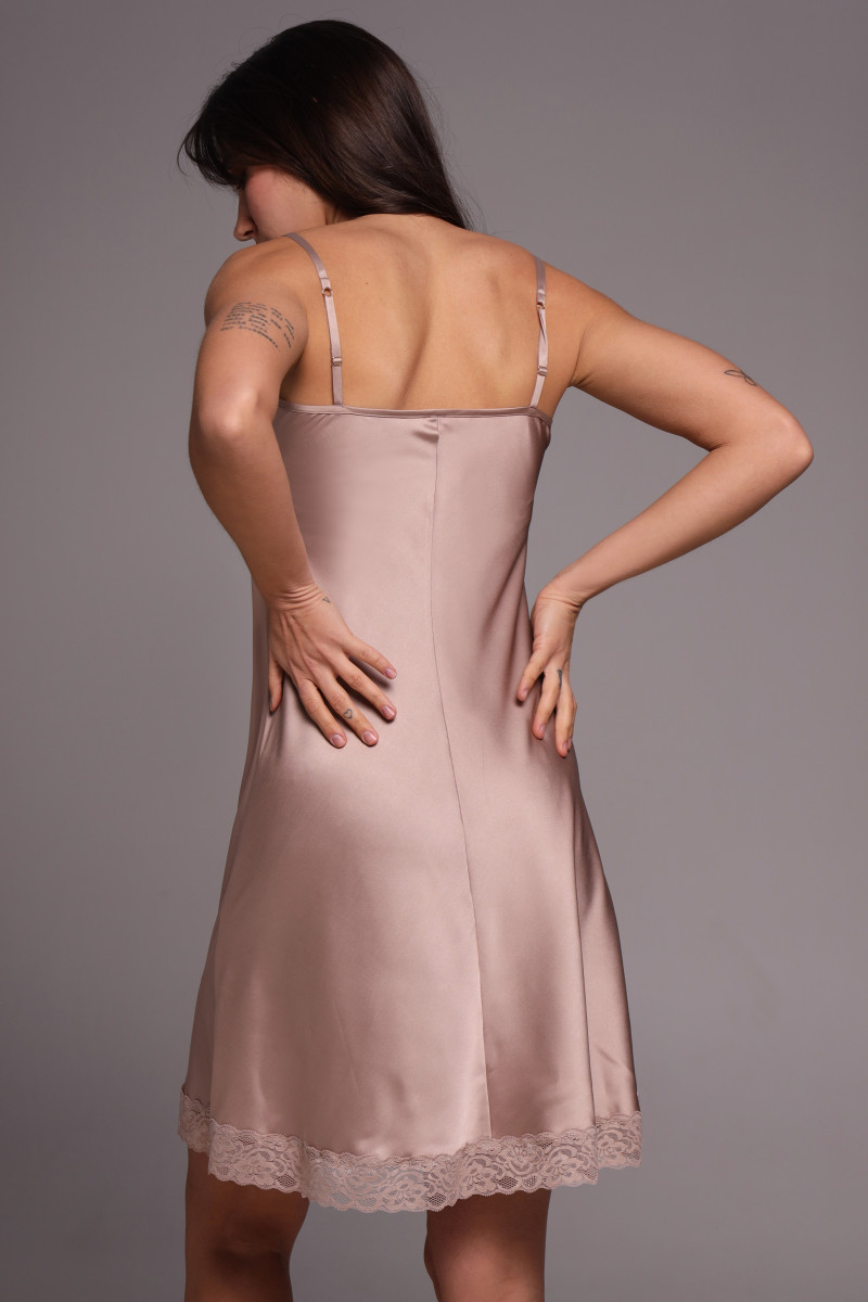 Сорочка нічна шовкова з мереживом на тонких бретелях - German Volf колір темно-бежевий