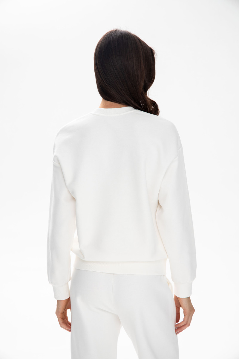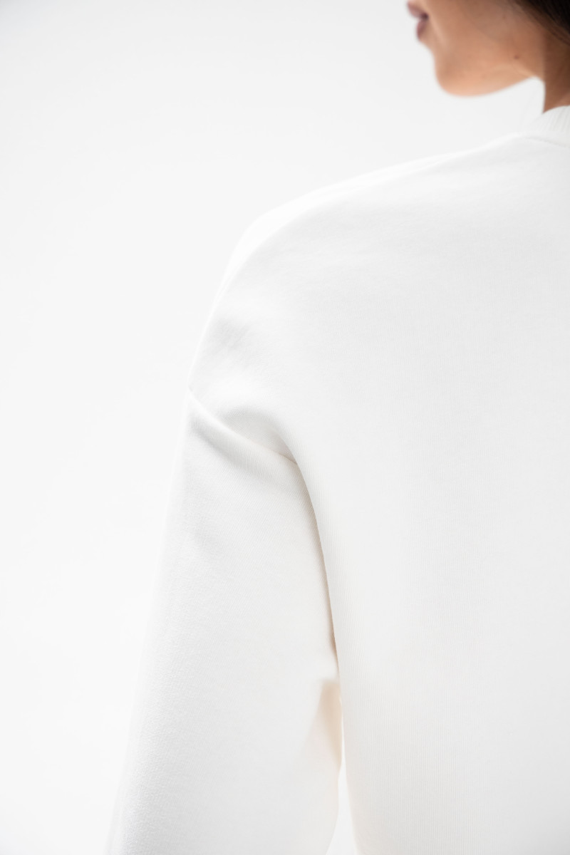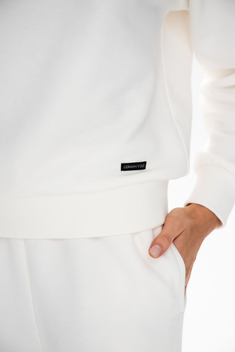 Світшот у стильному молочному відтінку створений із фірмового бавовняного флісу — тканини середньої щільності та ідеальної терморегуляції від українського бренду German Volf — це ідеальний вибір для тих, хто цінує комфорт та стиль у кожному елементі свого гардеробу. Виготовлений із трикотажної тканини з бавовняним начісом, цей світшот дарує неймовірне відчуття тепла та м'якості. Вільний крій забезпечує відмінну посадку, а еластична структура тканини дозволяє світшоту ідеально сидіти на фігурі, підкреслюючи її природні лінії.