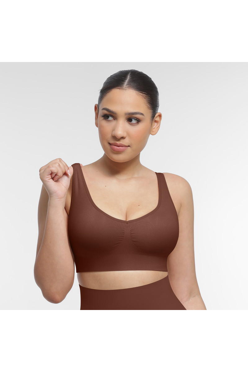 Завдяки продуманій конструкції топ м'яко фіксує груди, формуючи красиву лінію декольте без зайвого тиску. Відсутність кісточок робить його особливо комфортним для щоденного носіння - ви отримуєте підтримку без відчуття жорсткості.