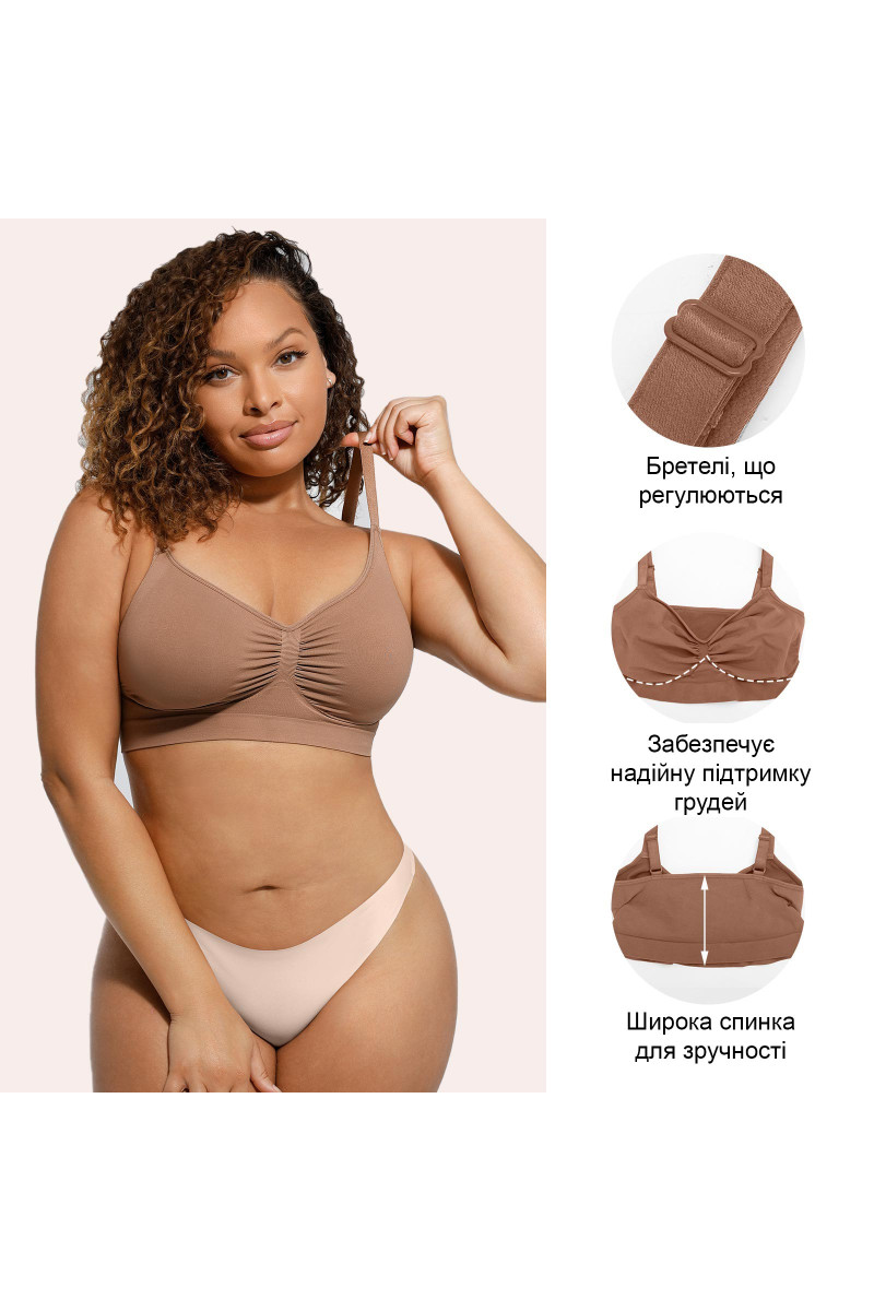 Безшовний дизайн робить бра повністю непомітним під одягом - його можна носити як самостійно, так і під будь-яке вбрання.