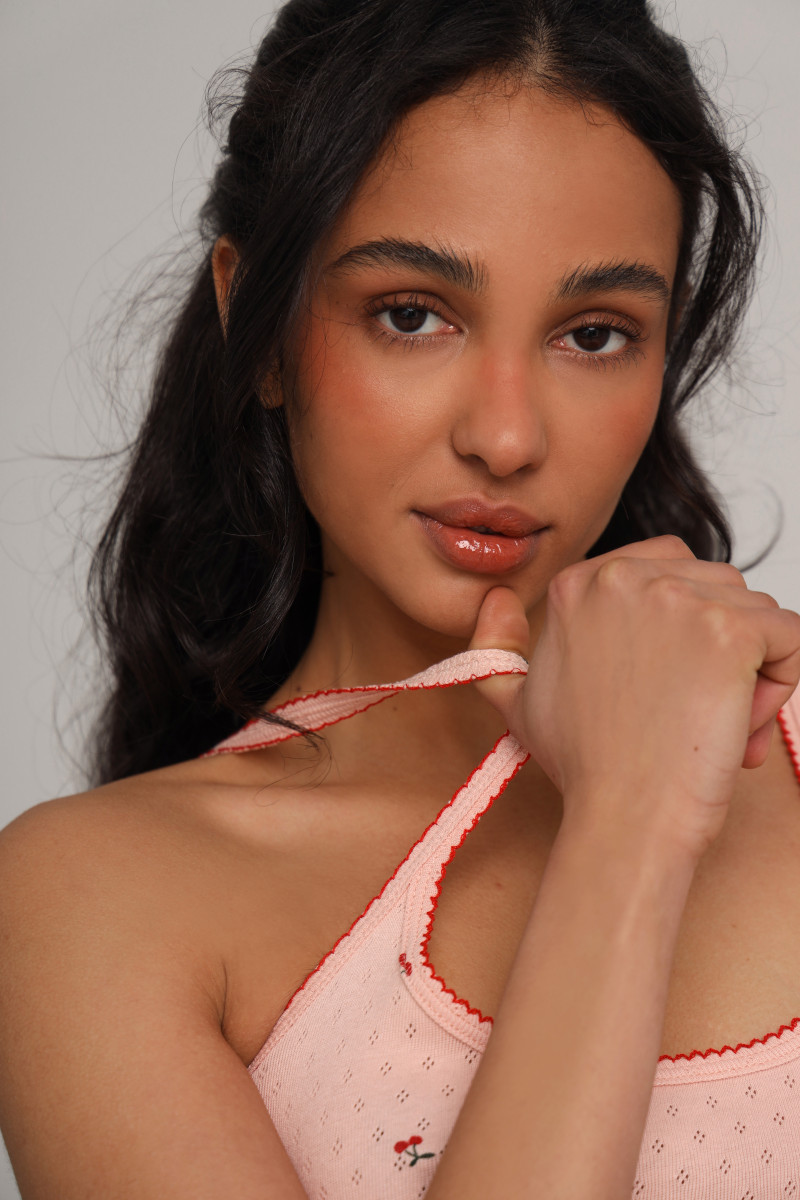 Женская сорочка на тонких бретелях с принтом вишен из коллекции "My Cherry" — German Volf