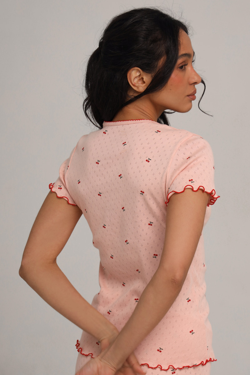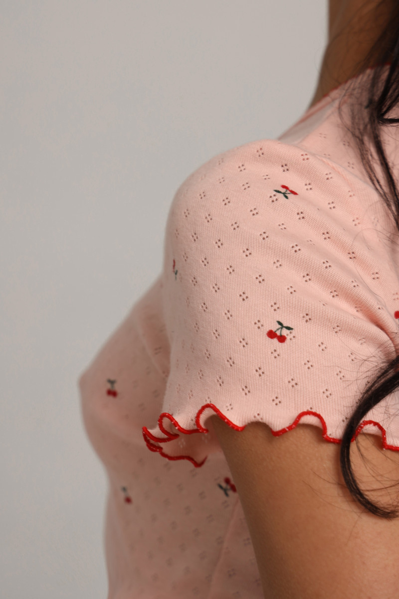 Футболка для сну з колекції "My Cherry" з принтом вишень та червоним кантом від German Volf