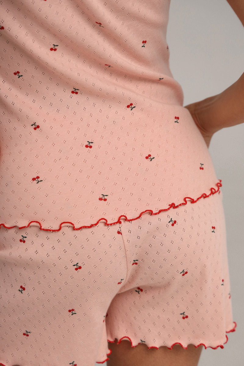 Декор у вигляді яскравого принту вишень, що надає виробу свіжого та грайливого вигляду.