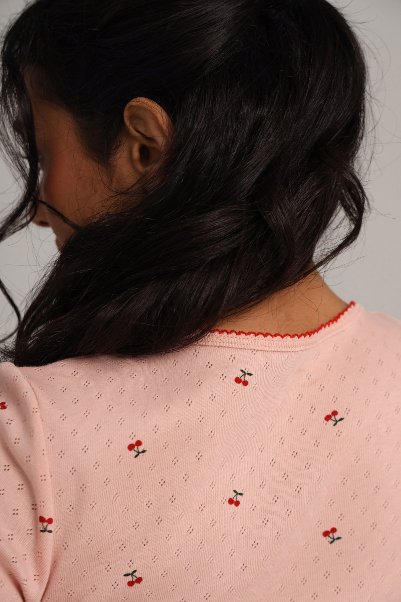 Футболка ідеально сидить по фігурі, не стискаючи рухів. М'який, але міцний трикотаж робить його комфортним для носіння як вдень, так і вночі. Колекція "MY cherry" поєднує у собі трендові елементи, які забезпечують не тільки естетичну привабливість, а й функціональність для вашого повсякденного комфорту.
